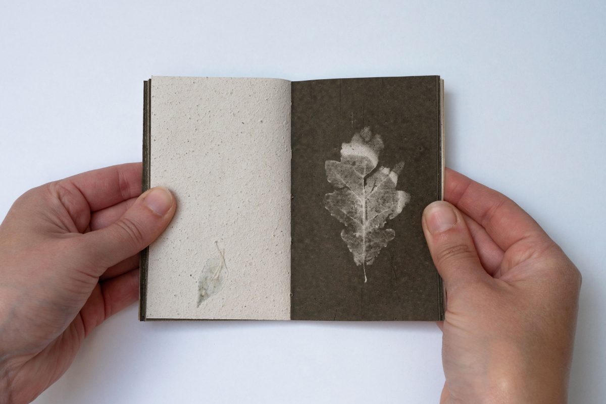 Artists working with photography are also challenging notions of ownership and preservation, exploring ecological alternatives to how we engage with and share images. British photographer Clare Hewitt’s recent project Everything in the forest is the forest explores symbiotic relationships at the heart of our forests. After reading a report in 2019 that revealed the rates of loneliness in the UK and learning that trees thrive in communities, Hewitt turned to the forest to see what she could learn from observing and understanding the relationship between twelve 180-year-old oak trees at the Birmingham Institute of Forest Research. Designing 24 wooden pinhole cameras, she fixed them to the oak trees to record them over a number of years. Through the project, Hewitt ‘reimagines what photographic practice can be, materially, ethically and socially’ by observing the ‘connection, care and intelligence’ within the community of oak trees. Observing the cyclical nature of the trees – that everything the trees produce returns back to the environment – she began to explore whether she could mirror this ecological regeneration through creating a sustainable photobook. Working collaboratively with artists Danielle Phelps, Carolyn Morton, Alice Fox, and book designer Emily Macaulay of Stanley James Press, they created a biodegradable photobook featuring ‘paper made with mushrooms, screen printing ink made with oak galls, and allotment grown spun linen thread’. Responding to the reciprocity she witnessed in the forest, and challenging ‘extractive mode of making’, Hewitt created a distribution system that rejects the notion of single ownership and instead focused on borrowing and sharing amongst recipients. To make this possible, the book was designed in 12 parts or ‘mini-books’ so they could be distributed and shared. Instead of owning the book, recipients signed up to borrow it for a week before passing it on to the next ‘custodian’, sharing similarities with Calel’s practice of temporary custodianship in The Echo of an Ancient Form of Knowledge. These ideas reflect the life cycles of the natural world and challenge us to think about temporality and ageing as inherent to an artwork’s lifespan. They also disrupt capitalist models of extraction and ownership, pushing us towards more reciprocal and generous models of care. As Hewitt draws attention to – like the lifespan of the forest – the biodegradable photobook is designed to return to the natural world that it emerged from, creating a book ‘rooted in reciprocity, responsibility and ecological awareness.’ Through working closely with the forest and observing the intimate and collective ecosystem, Hewitt’s project presents photography ‘as a living system: responsive, inclusive and circular’ allowing ageing and decay into the work as a natural part of the life cycle, while resisting notions of extraction, ownership and preservation at the heart of capitalist systems. Responding to our ongoing state of ‘social fragmentation and environmental crisis’ Hewitt suggests that ‘we can and must create differently’.